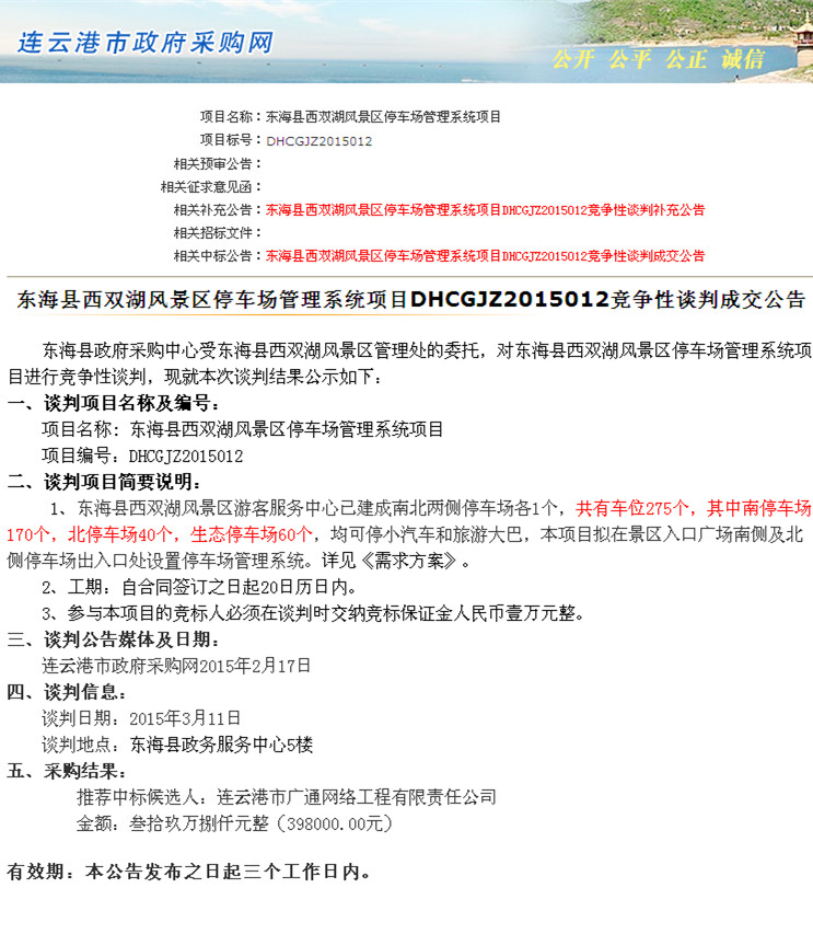 热烈祝贺我公司成功中标东海西双湖风景区停车场管理系统项目